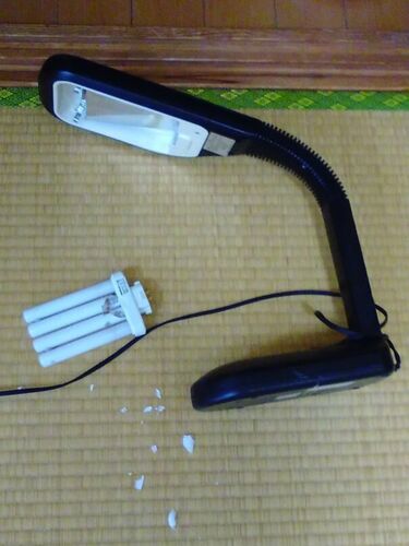 ぎゃぁぁぁぁっ! やっちまっただよ! 寝床で本を読むときに使っている卓上蛍光灯スタンドを倒して、蛍光管を割ってしまった! こういうときにまずやることが、スマホを探してブログ用の写真を撮るというあたり、相当毒されているという自覚はある。 それは…