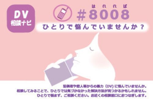 DV相談ナビについて配偶者からの暴力に悩んでいることを、どこに相談すればよいかわからないという方のために、全国共通の電話番号(#8008)から相談機関を案内するDV相談ナビサービスを実施しています。 発信地等の情報から最寄りの相談機関の窓口に電話が…
