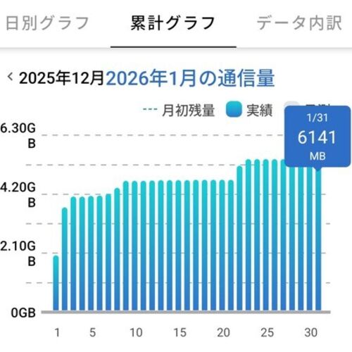 月末または月初のギガ (高速データ通信容量) 消費量の記録、直近何か月かは繰り越し繰り越し6GBを使い余したことが続き、先月末 (昨年末) の拙過去記事には「来月 (来年) からはやらないかも知れない」と書いたけど… watto.hatenablog.com ぎゃあああぁぁぁ…