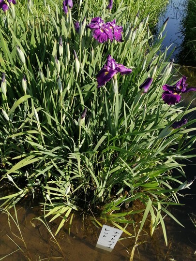 「ナイトバイオレット」。おやまたカタカナの品種名。ある種(この場合ハナショウブ)に別の種(この場合バイオレット=スミレ)の入った名前をつけるって、以前もどっかで見たことあるけど、いいの? ちょっと気になる。