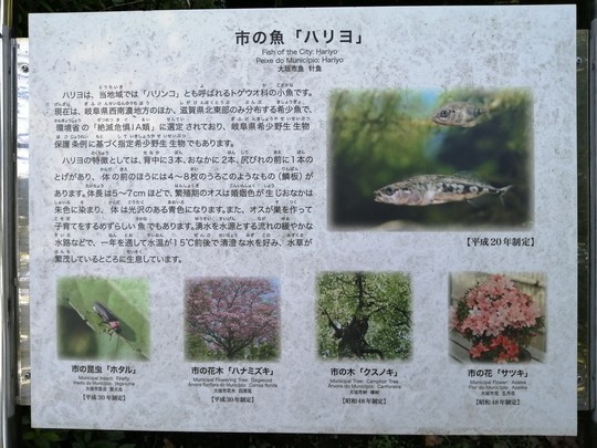 ハリヨは、当地域では「ハリンコ」とも呼ばれるトゲウオ科の小魚です。現在は、岐阜県西南濃地方のほか、滋賀県北東部のみ分布する希少魚で、環境省の「絶滅危惧IA類」に選定されており、岐阜県希少野生生物保護条例に基づく指定希少野生生物でもあります。