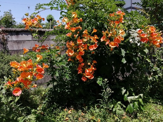 ノウゼンカズラは去年より育って花の数が増えていた。