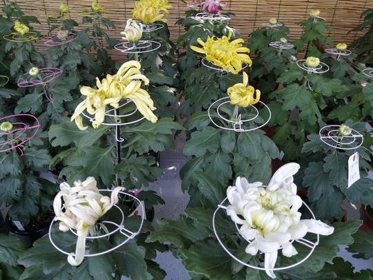 噴水右側の、仮設テントの内側に多数のキクの鉢植えが並んでいた。
