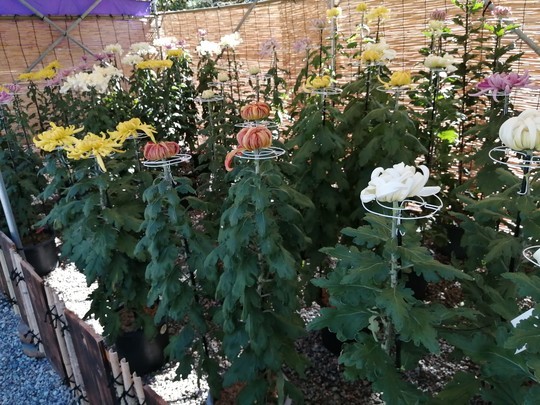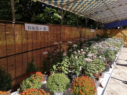 菊展、菊人形以外で、目についたものをいくつか。この日撮ったスマホ写真は、どれも木漏れ日と日陰のコントラストが激しくわかりにくいけど。