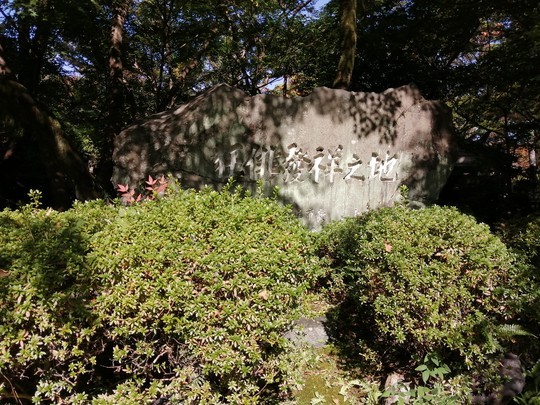 入口左手。木漏れ日と日陰のコントラストが激しくて、わかりづらいな。常設っぽい。