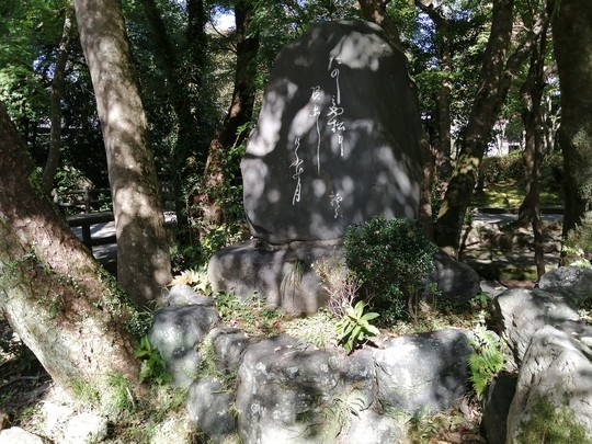 達筆で読めないけど、公園内で貰った「岐阜市句碑マップ」というA3 2つ折りカラーのパンフレットによると「たのしみや松に隠れしけふの月」と刻まれているそうだ。google:三浦樗良という人の句との由。