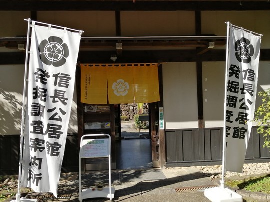 北口の駐車場に引き返す途中にあった「信長公居館発掘調査案内所」。