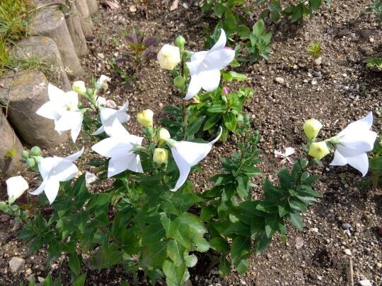 白いキキョウもあった! なおツボミを見ると「むべキキョウを balloon flower といふらむ」と以前にも書いたことのある戯言が頭に浮かぶ。