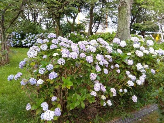 園内に足を踏み入れると、まず(やや盛りを過ぎた観あったものの)アジサイはじめ色とりどりの花が出迎えてくれた。