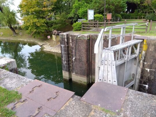 順番前後ついでに閘門がよく見える写真を先に貼る。長くなりそうなのでエントリーを前後編に分け、ハス田その他は後編に貼ることにする。