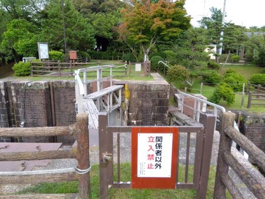 この閘門は複閉式で門扉が二重となっており、わが国で初めてのものです。