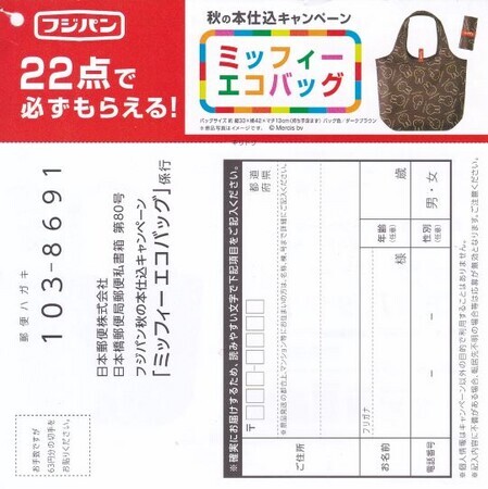 応募券を何枚か集めるとミッフィーのエコバッグが必ず貰えるというもので、毎年集めている。去年以前のキャンペーンは、この記事から芋づる式にたどれるはず。