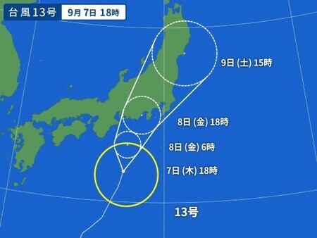 本州直撃コースが予想された台風13号に関しても、何枚か保存した。