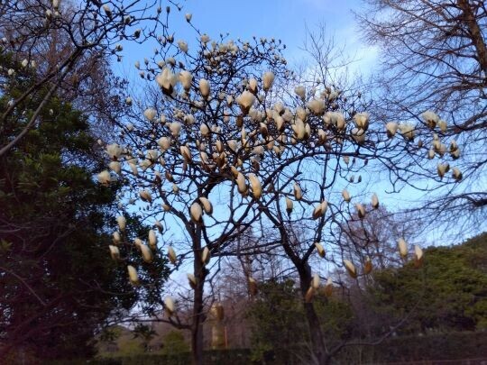 敷地内を流れる三宅川という川にかかる橋を渡ったあたりで、まず目を引いたのはモクレンだった。