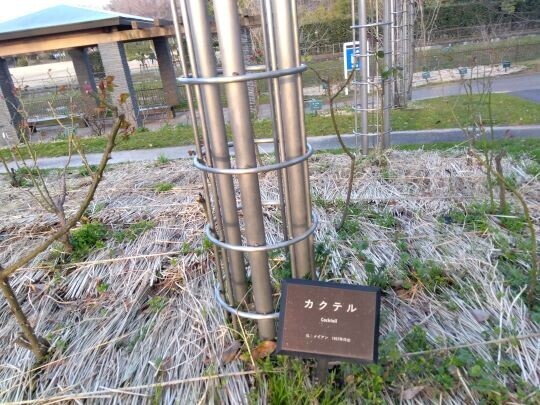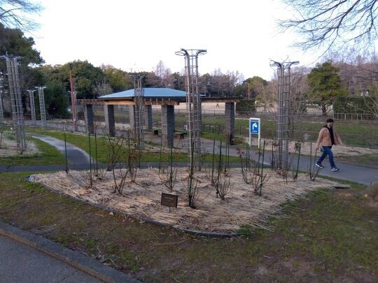 モクレンを通り過ぎたあたりに、バラ園の花壇があった。鋭意(花の)準備中というところであろう。
