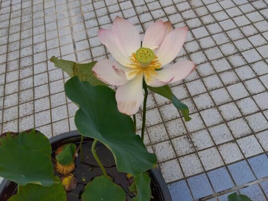 上の写真の後ろの「友諠牡丹蓮」。すでに花が散ってシベだけが残っていた。