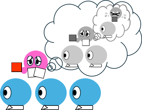 だが前のプレイヤーに赤い帽子をかぶせたら、後ろのプレイヤーが「自分が赤い帽子をかぶっている」と申し出ないことにより、前のプレイヤーには「自分が赤い帽子をかぶっている」とわかってしまうという次第だ。