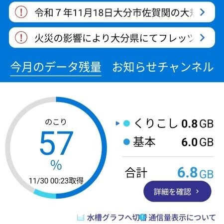 今月 (11月) はWi-Fi環境下にいられる日が多く、順当であれば最大6GBの繰り越し分を使い残す予定だった。年に数か月の消費が多い月の直後であれば、繰り越し分をmaxまで積み増しておくべき月に当たる。